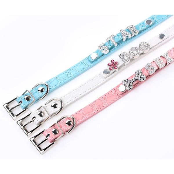 犬用首輪 名前入り首輪 キラキラ レザー調 犬猫 選べる色文字チャーム 最大6文字個 全5色 オーダーメイド