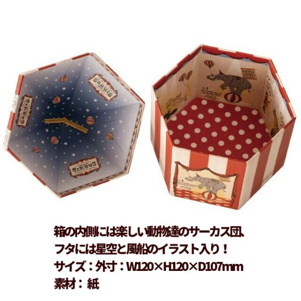 箱の内側には楽しい動物たちのサーカス団、フタには星空と風船のイラスト入りで遊び心たっぷり!
