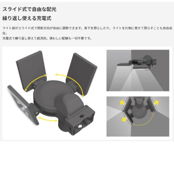 [RITEX/ムサシ]5W×3灯 スライド型 USB充電 着脱式バッテリー 屋外 防水 人感センサー高輝度1200ルーメンLEDセンサーライトLEDRC830