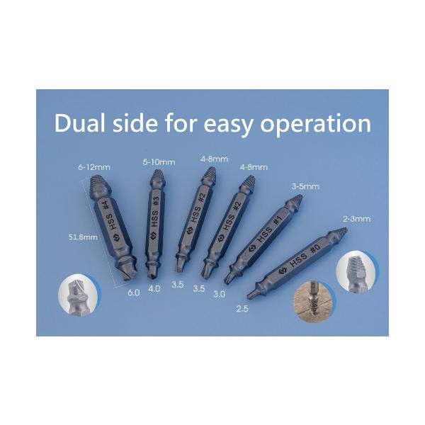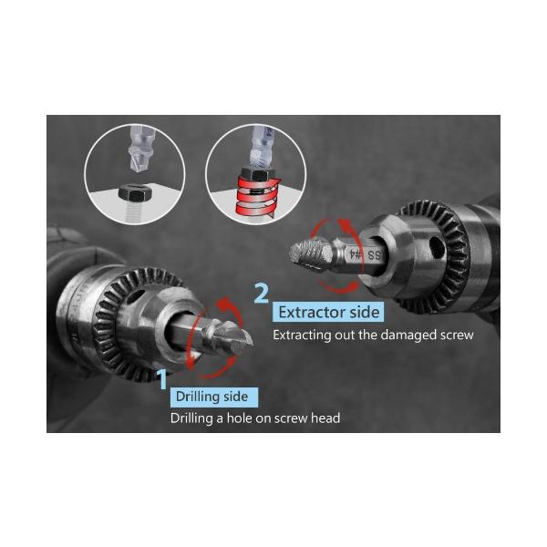 片側がドリル、もう片側がエキストラクターになっているので1本で下穴開けからエキストラクターでのネジ外しまでが可能です。