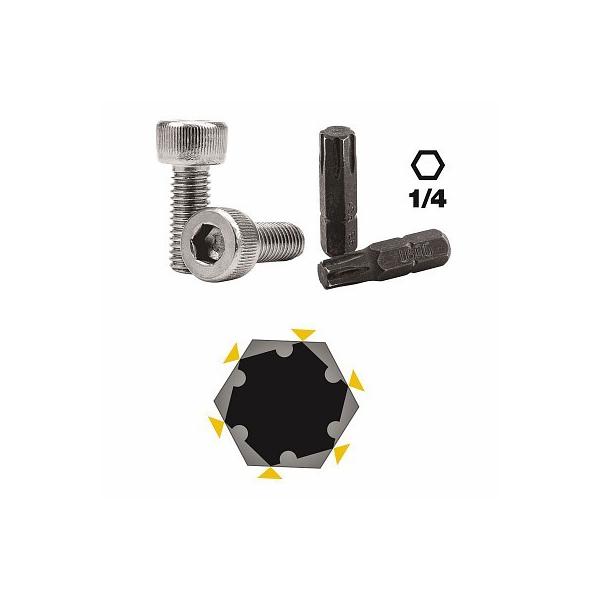 特殊形状のビットは緩め方向に回すと六角穴に食いつき、最大98%ダメージを受けた六角穴付きネジが緩められます!