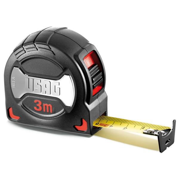 精密クラスII耐衝撃性のABSケース外側のゴムはほこりや油から内部を保護します42°(サポート面)の斜面まで滑り止め反射防止ナイロンコーティングされたスチールベルト耐腐食性と耐摩耗性のナイロン3つのリベットでテープに固定されたマルチグリップメタルフック自動テープ巻き戻し付き停止ボタンステンレス鋼クリップ測定:3mテープ幅:19mm