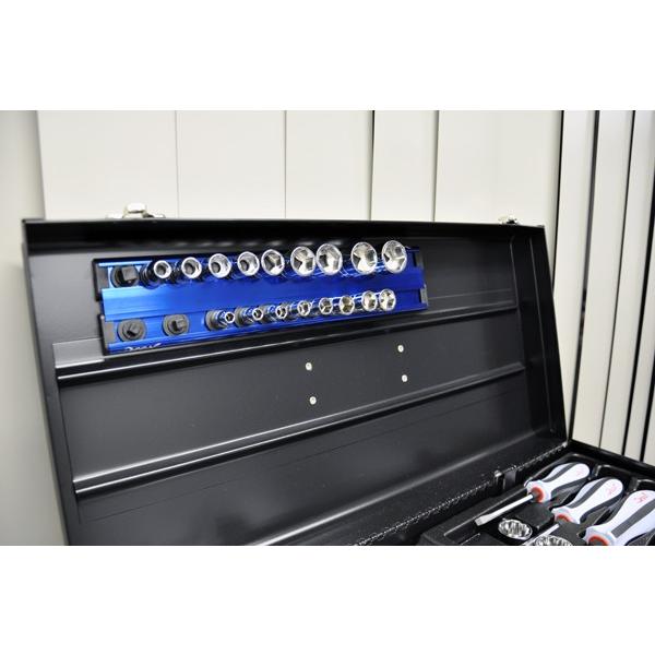 全長:305mm幅:65mm強力マグネットを内蔵したダブルレールタイプのホルダーです。左右別々のサイズのソケットスタッドを装着する事で、理想的なソケットホルダーを作り出す事が出来ます。(マグネットは超強力ですので、取り付け、取り外しの際はご注意を)※ソケットクリップは別売りです。