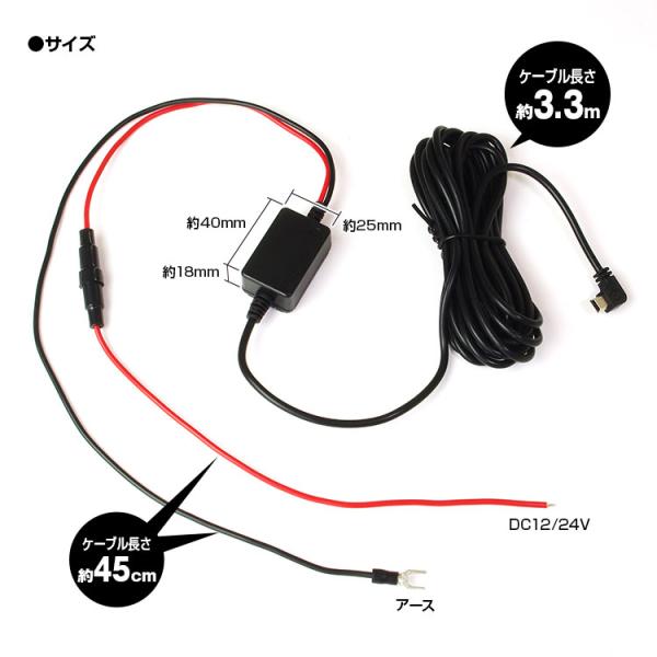 ドライブレコーダー miniUSB電源コード 電源ケーブル ドライブレコーダー バッテリー低電圧保護機能 ノイズ対策 防犯
