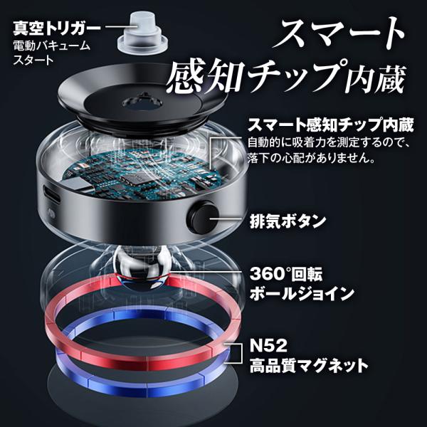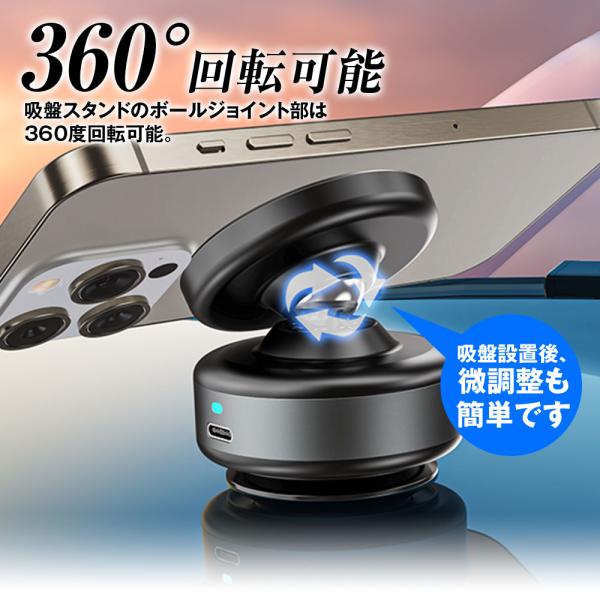 真空吸着 スマホホルダー 車 MagSafe 電動 真空吸盤 フロンドカラス ホルダー マグセーフ マグネット 360°角度調整