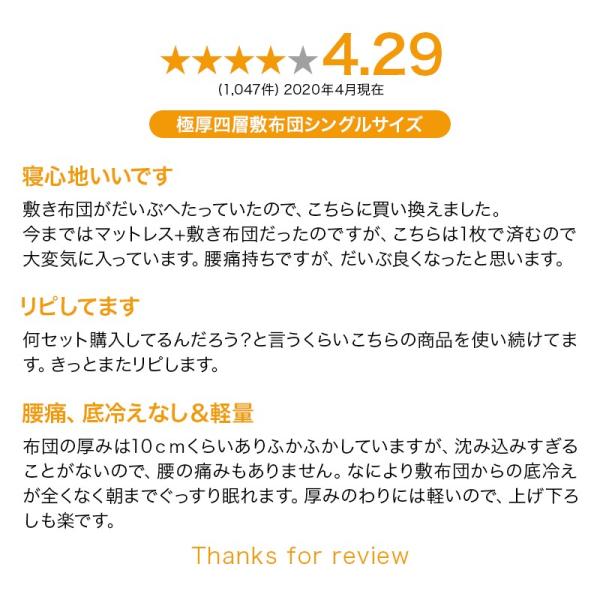 日本製 敷布団 シングル 極厚 四層 ボリューム テイジン