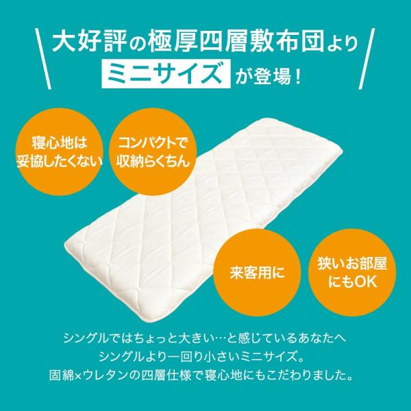 布団 敷布団 敷き布団 シングル 極厚 四層 ボリューム ミニサイズ 70×180cm 帝人 テイジン アクフィット 無地 防ダニ 抗菌 防臭 吸汗 速乾 日本製 爆買