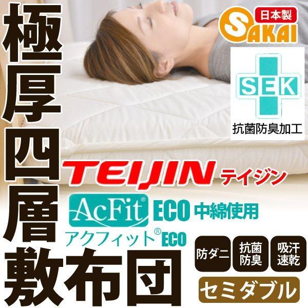 敷布団 セミダブル 日本製 敷ふとん 敷き布団 防ダニ ボリューム 極厚 四層 帝人 テイジン アクフィット中綿 無地 抗菌 防臭 吸汗 速乾 腰痛 爆買
