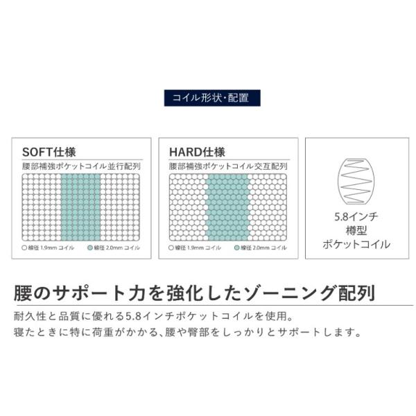 耐久性と品質に優れる5.8インチポケットコイルを使用。