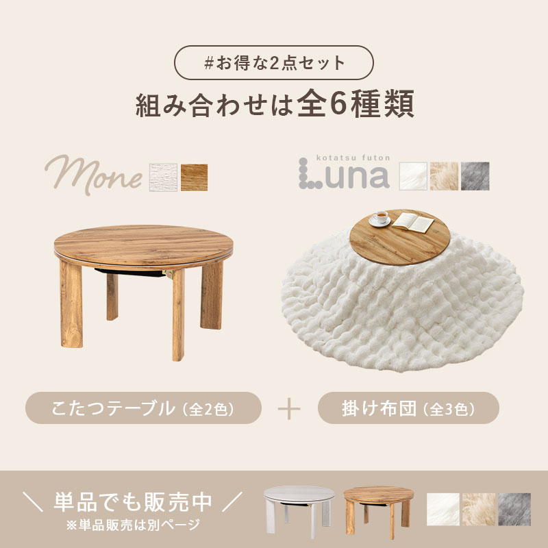 こたつ こたつセット 一人用 こたつテーブル おしゃれ こたつ布団 テーブル セット 洗える 丸型 コタツ 白 折りたたみ 木目調 韓国 姫系 かわいい モネ+ルナ
