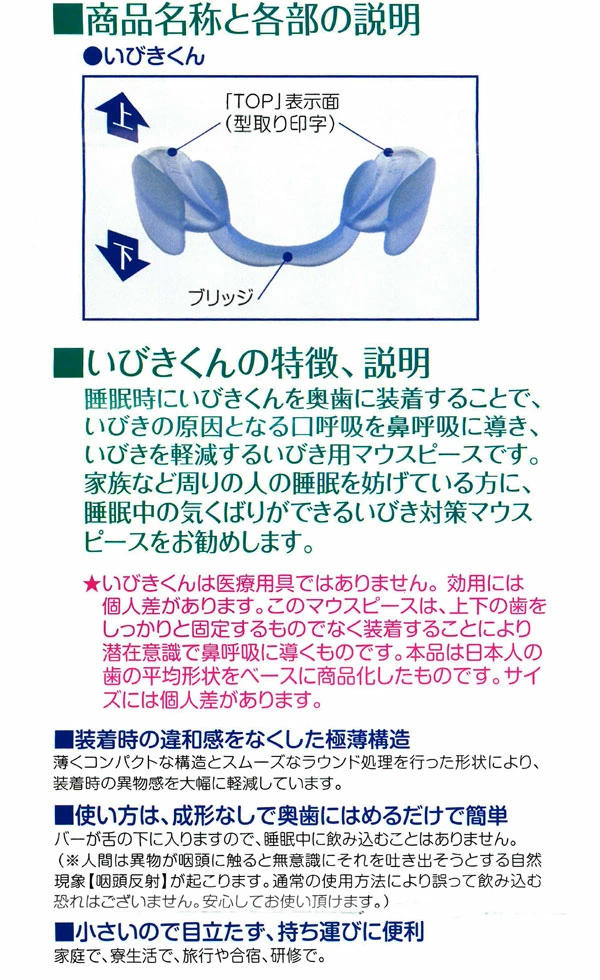 いびき いびき対策 収納ケース付き マウスピース 男女兼用 フリーサイズ 簡単装着 旅行 ホテル いびきくん 繰り返し使える 【▲】/いびきくん
