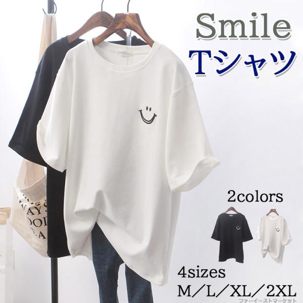Tシャツ 半袖 レディース モノトーン シンプル 無地 ワンポイント 涼しい カジュアル おしゃれ かわいい トップス 着まわし 通勤 通学 スマイル