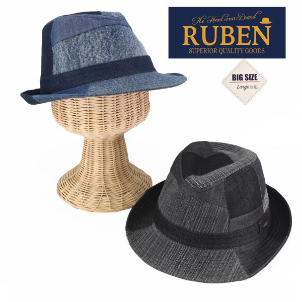 ルーベン(RUBEN)Lサイズ デニムパッチワーク中折れハット 帽子 メンズ レディース帽子 デニム パッチワーク 大きいサイズ BIGサイズ オールシーズン