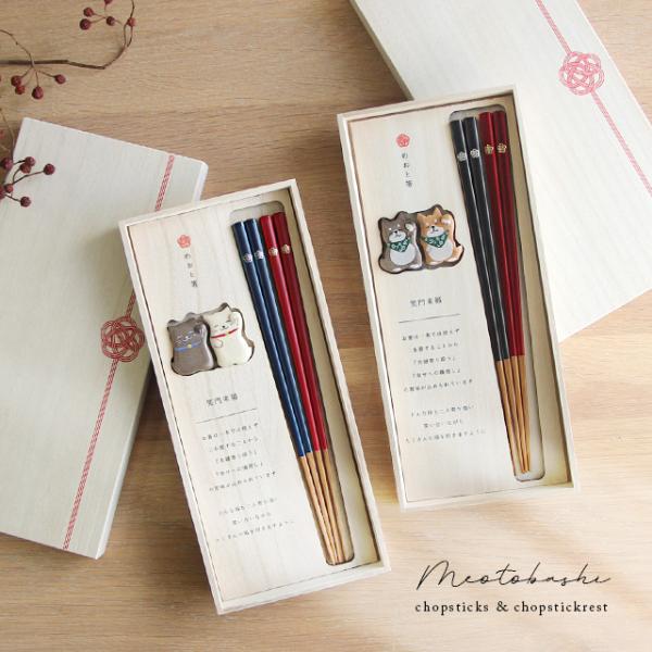 笑門来福箸揃え(夫婦箸 めおと箸 結婚祝い 箸置き ペア おしゃれ お箸 ギフト 結婚式 プレゼント カトラリー 食洗機対応 滑り止め 竹 はし 花 犬 結ギフト)