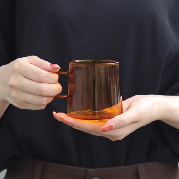 おしゃれ 北欧 シンプル レトロ 可愛い かわいい 積み重ね スタッキング 洋風 アンティーク ノスタルジック 耐熱 ガラス ガラス製 取っ手 持ち手 食洗機 食洗機対応 食洗機可 食洗器 レンジ対応 電子レンジ対応 電子レンジ可 クリア グレー アンバー 透明 ブラウン
