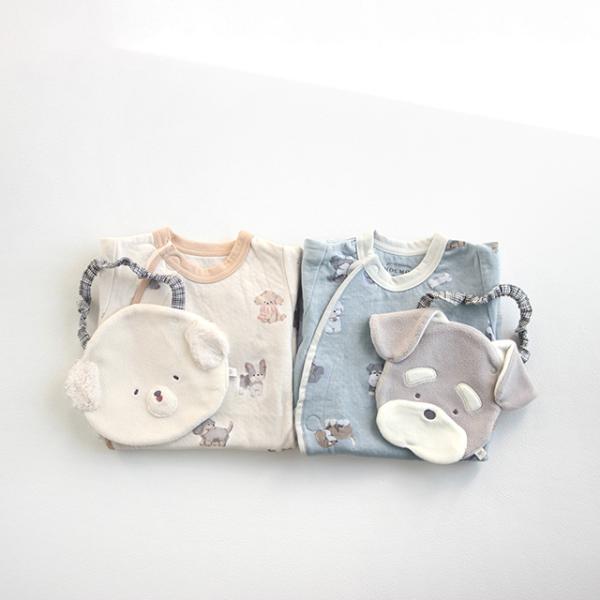 mocmof わんこお着替えかんたんロンパース&スタイセット(出産祝い 男の子 女の子 わんこ スタイ ロンパース セット かわいい おしゃれ ギフト プレゼント)
