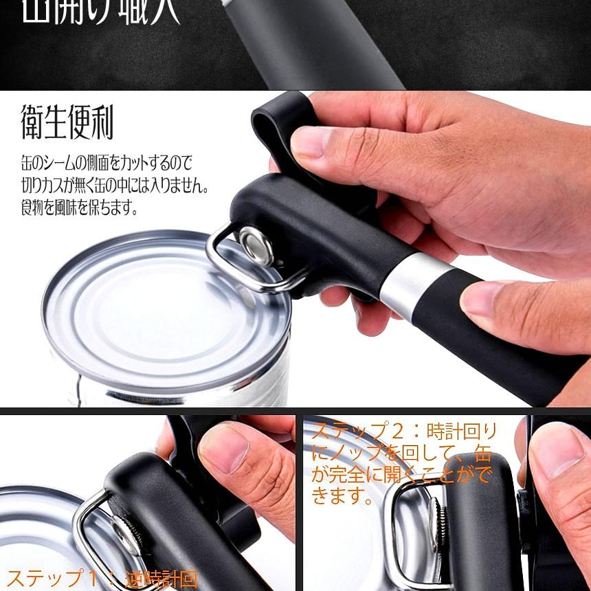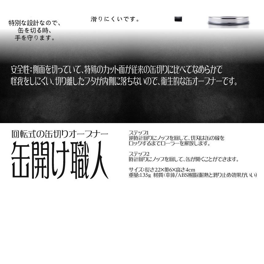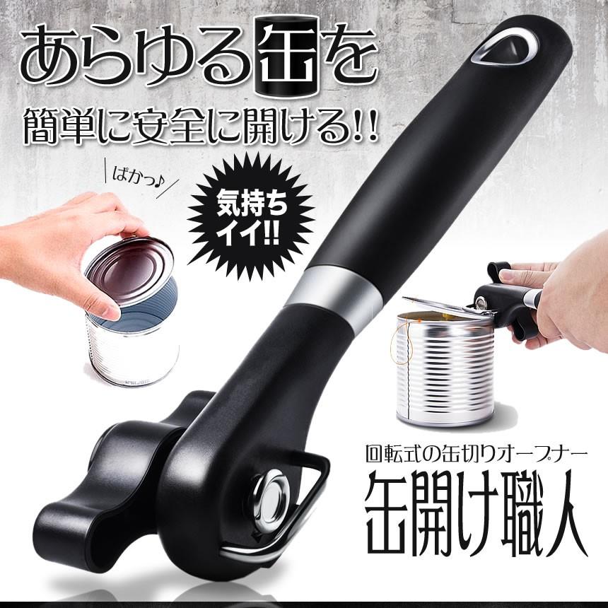 缶切り 回転式 おしゃれ オープナー 缶切り 簡単 安全 ステンレス製 缶開け ブラック キャンプ スタイリッシュ キッチン用品 アウトドア 缶切り職人 KANSHOKU