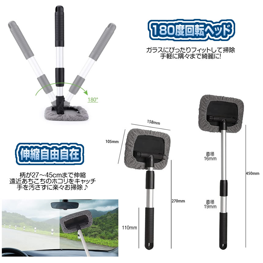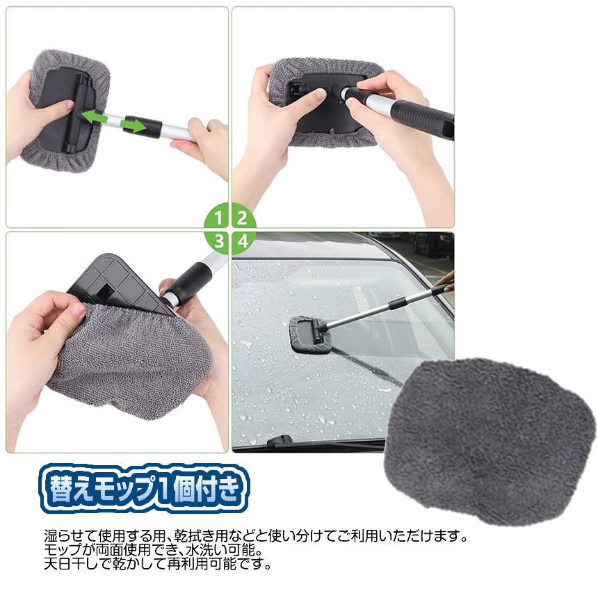 洗車モップ ロング ウィンドウ 車 45cm 窓拭き 伸縮 洗車 ハンディ タオル ガラスクリーナー 内窓 家具 掃除用 カー用品 ウォッシュ ブラシ モップ WINDOMOP