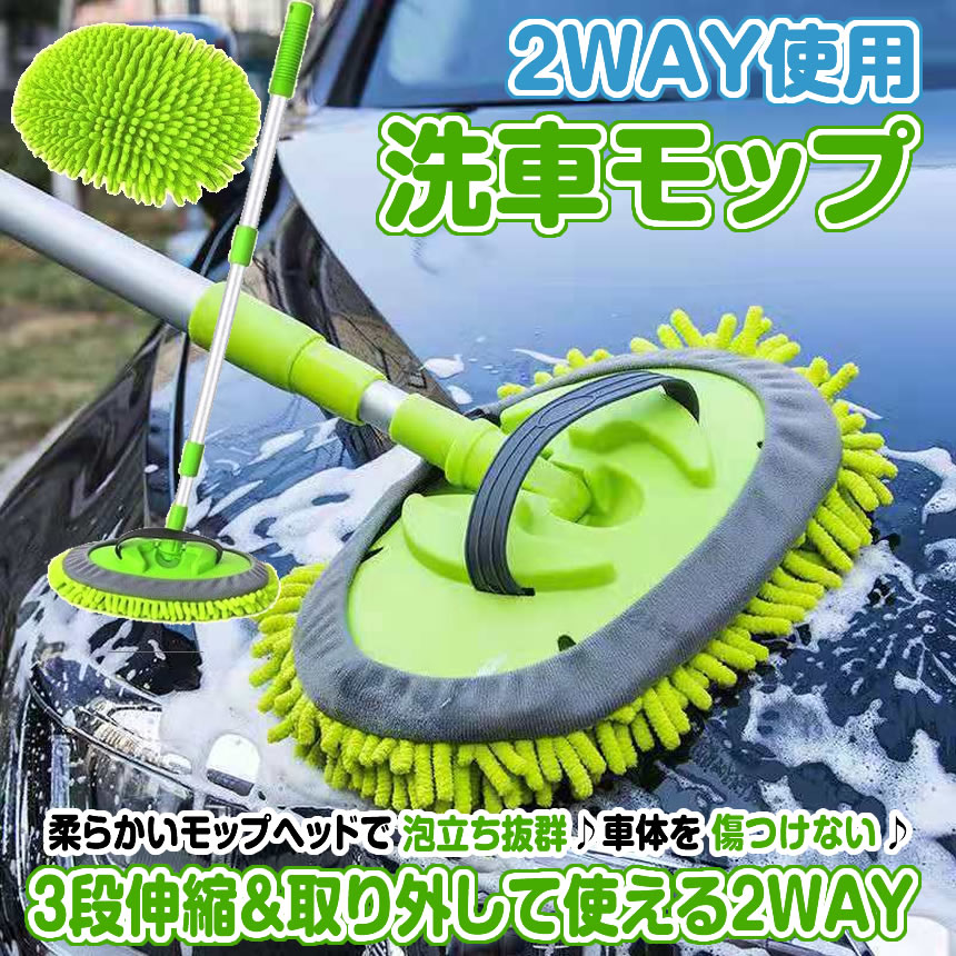 2WAY洗車モップで簡単に愛車をピカピカに!