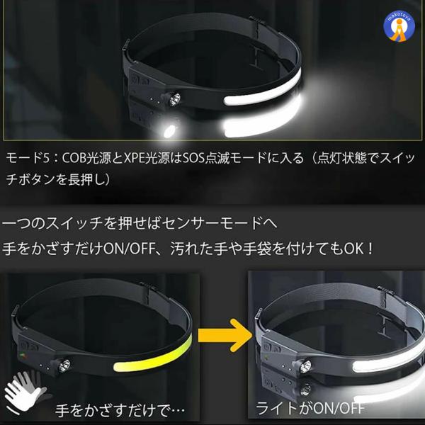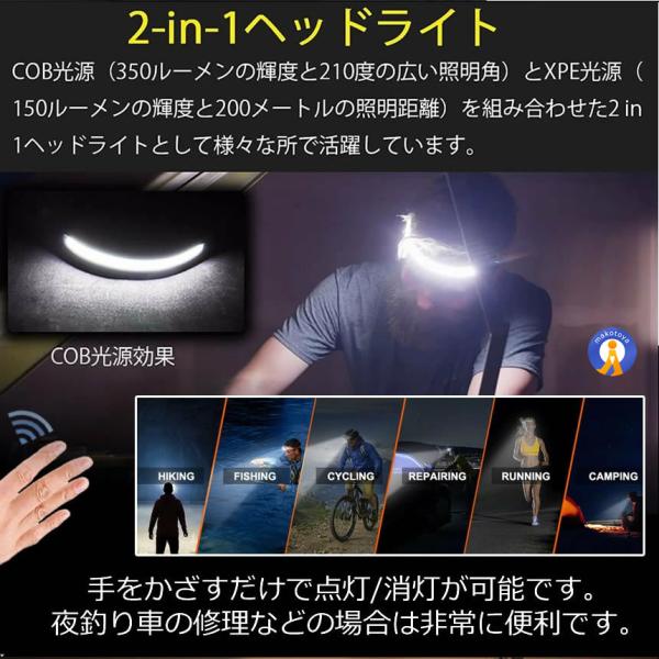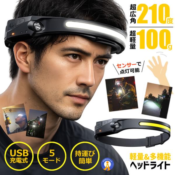 ヘッドライト 超広角 照射 充電式 USB LED デュアル ヘッドランプ 5種点灯モード 100g 軽量 アウトドア用 防水 釣り 登山 作業灯 懐中電灯 防災 小型 DRYTO