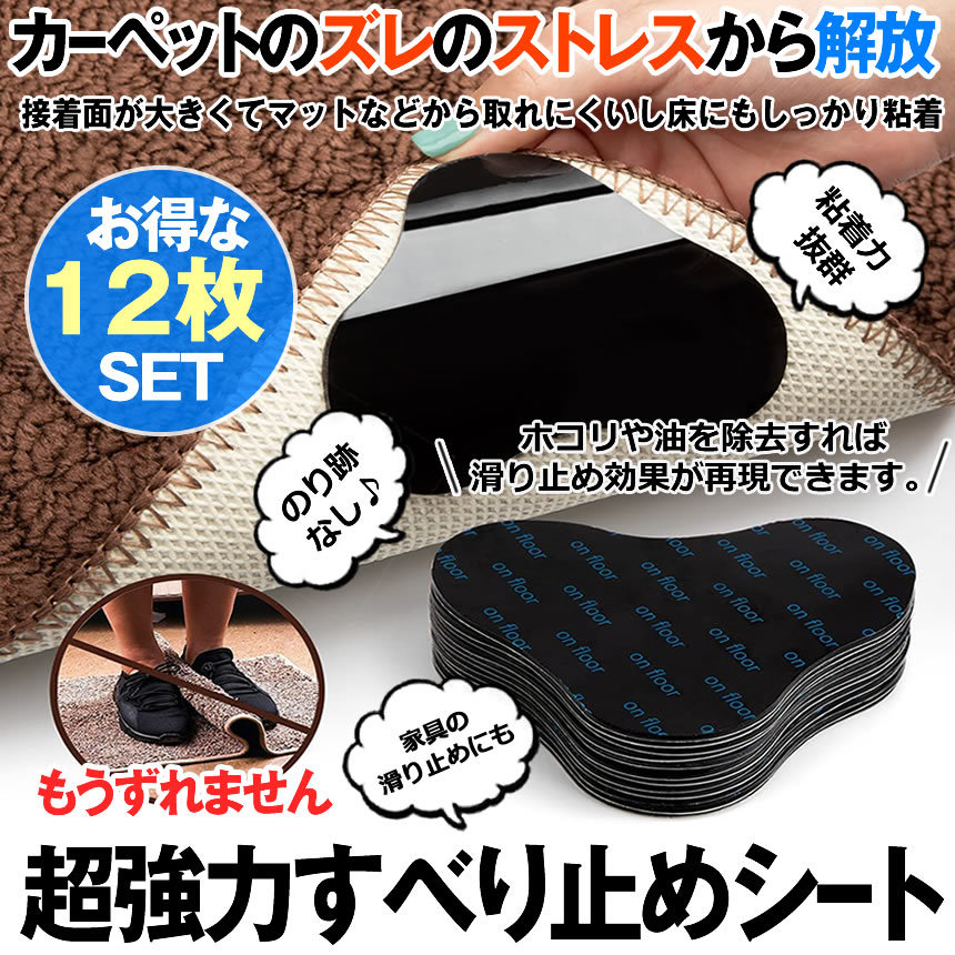 滑り止め シート 12枚入り シート すべり止めシート ラグ カーペット マット 再利用 剥がせる テープ 吸着 マット 強力 ズレ防止 家具 TYORISI