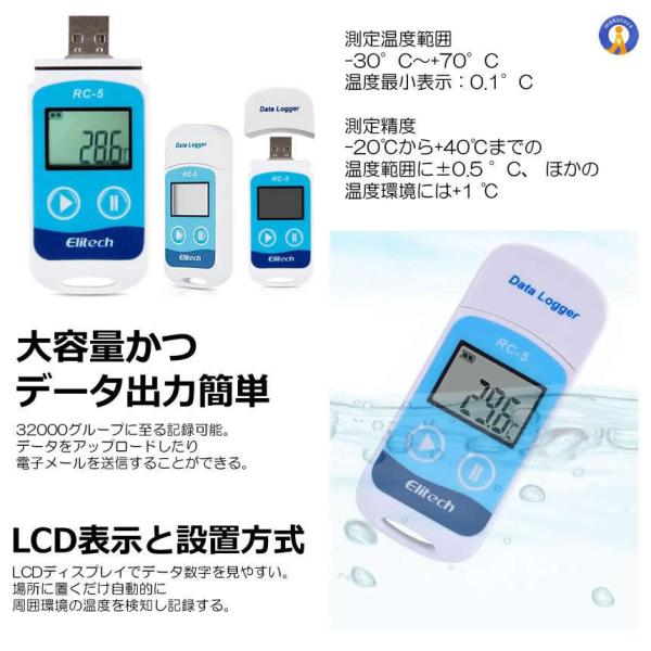 USB 温度 データーロガー 記録計 レコーダー 簡単 解析 接続 管理 LCD表示 転送 移行 エクセル 保存 パソコン管理 小型 長持ち 大容量 USB RC-5