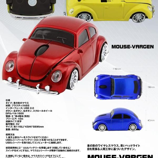 無線マウス イエロー 2.4GHz ワイヤレスマウス USB ゲーミング BLUETOOTH コードレスマウス 車型 パソコン インテリア 受信機 MOUVERGEN-YE