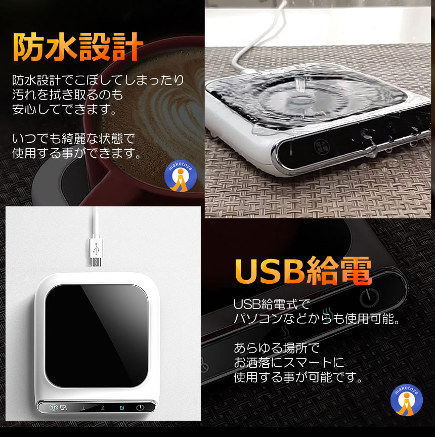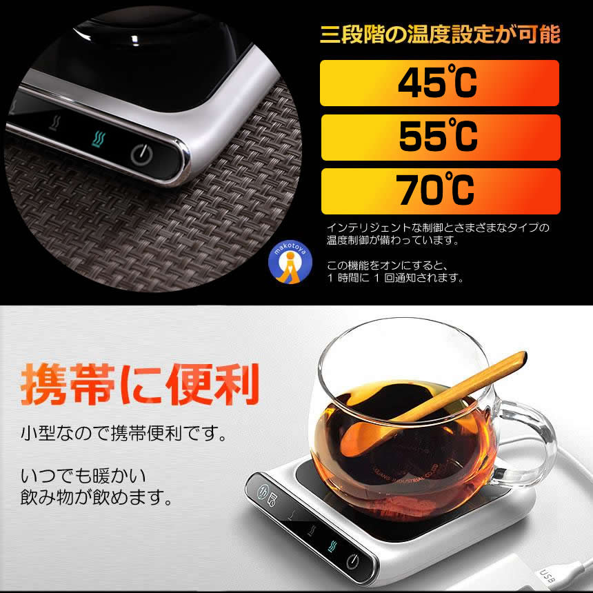 カップウォーマー USB 保温 給電式 コップ保温 保温コースター ドリンクウォーマー 45℃ 55℃ 70℃ コーヒー 紅茶 お茶 多機能 オフィス 家庭 COOPKI