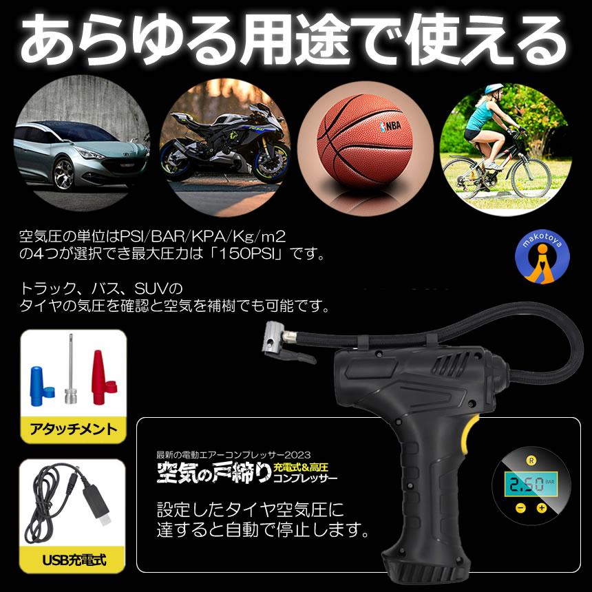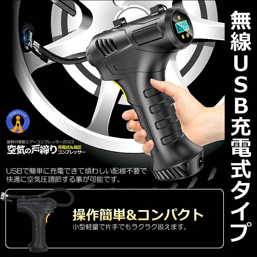 エアコンプレッサー 小型 USB 充電式 コードレス 電動空気入れ 2000mAh 電動ポンプ メンテナンス エアーコンプレッサー 車 バイク 自転車 ボール MUSEEKIKU