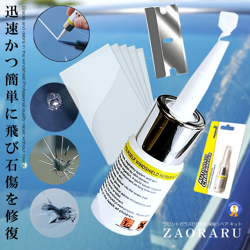 ガラスリペア フロントガラス 飛び石 リペア キット 3点セット ヒビ 節約 DIY 窓ガラス 補修 修理 修復 飛び石 傷 工具 ガラス カー用品 ZAORARU