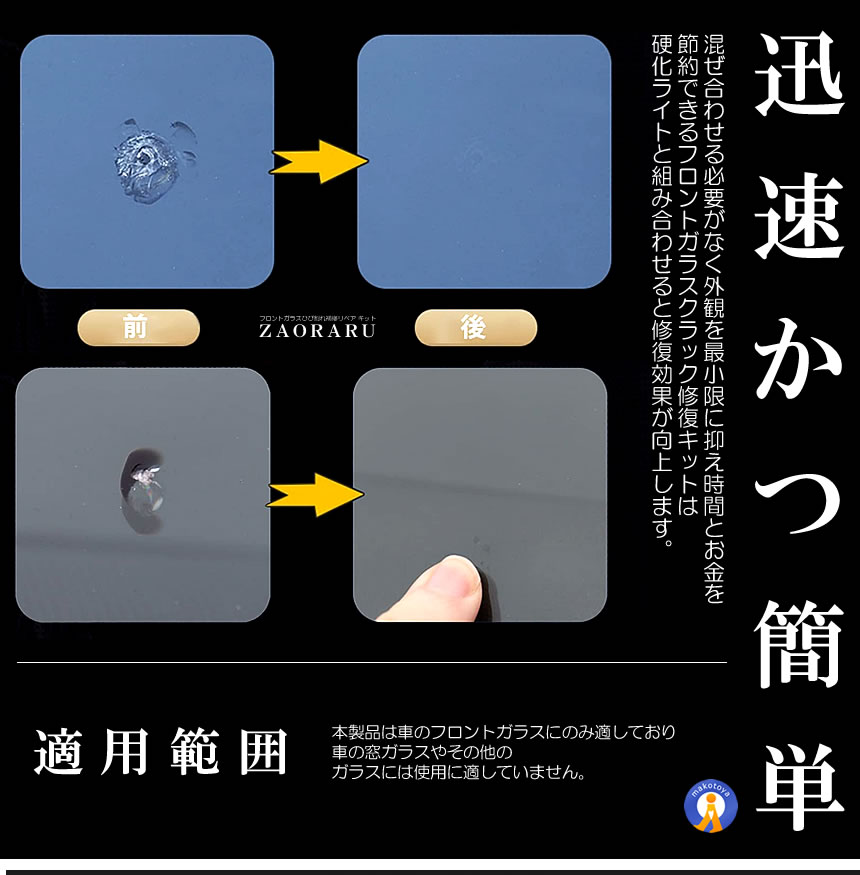 簡単にフロントガラスの飛び石のヒビ傷を修復 リペア キット