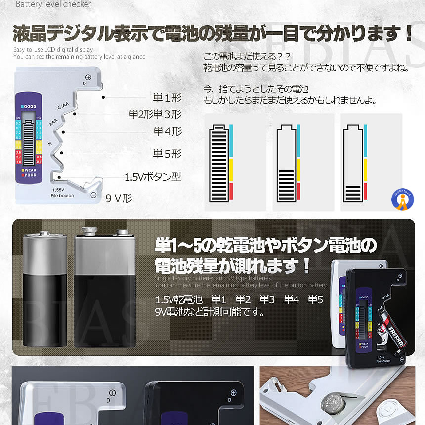 単1?5の乾電池やボタン電池の電池残量が測れます!