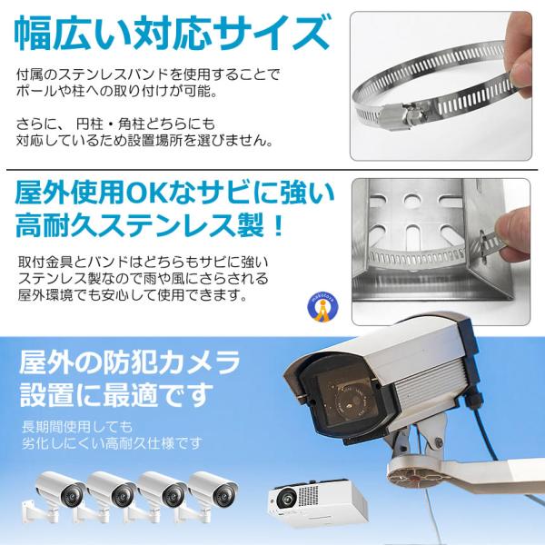 防犯カメラ 取付金具 ポール用 屋外対応 ステンレス製 監視カメラ 壁面設置 バンド固定 調整可能 BOKACHAN