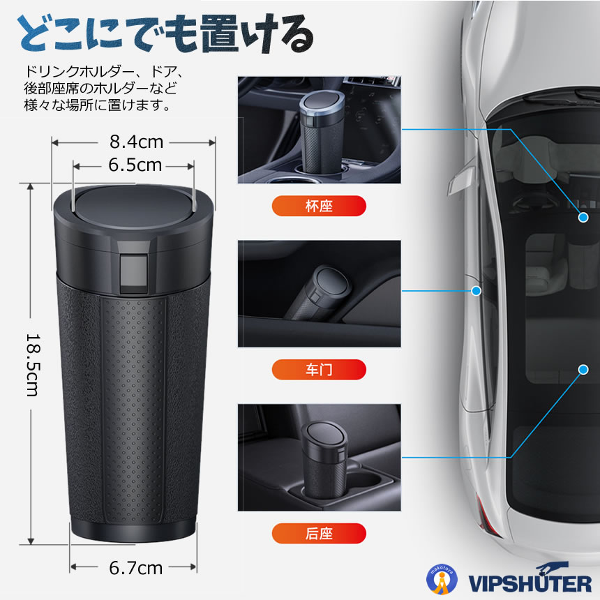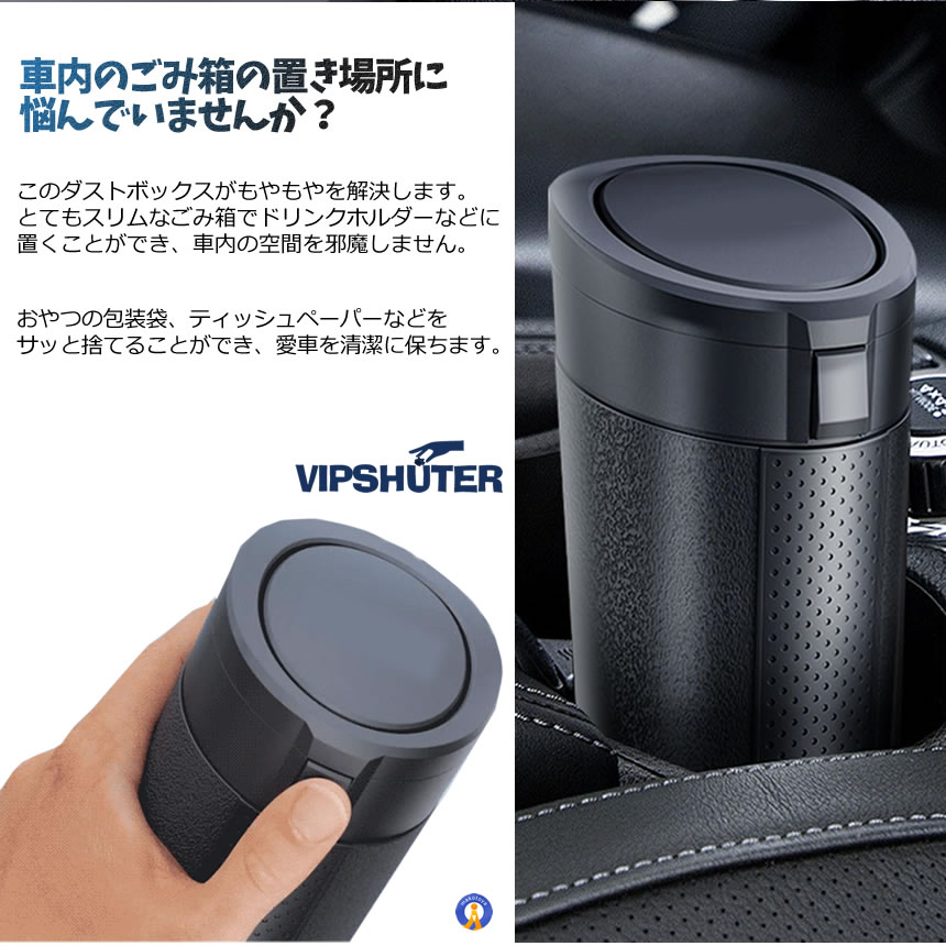 車用ゴミ箱 蓋付き 漏れ防止 コンパクト設計 ドリンクホルダー対応 小型 VIPSHUTER