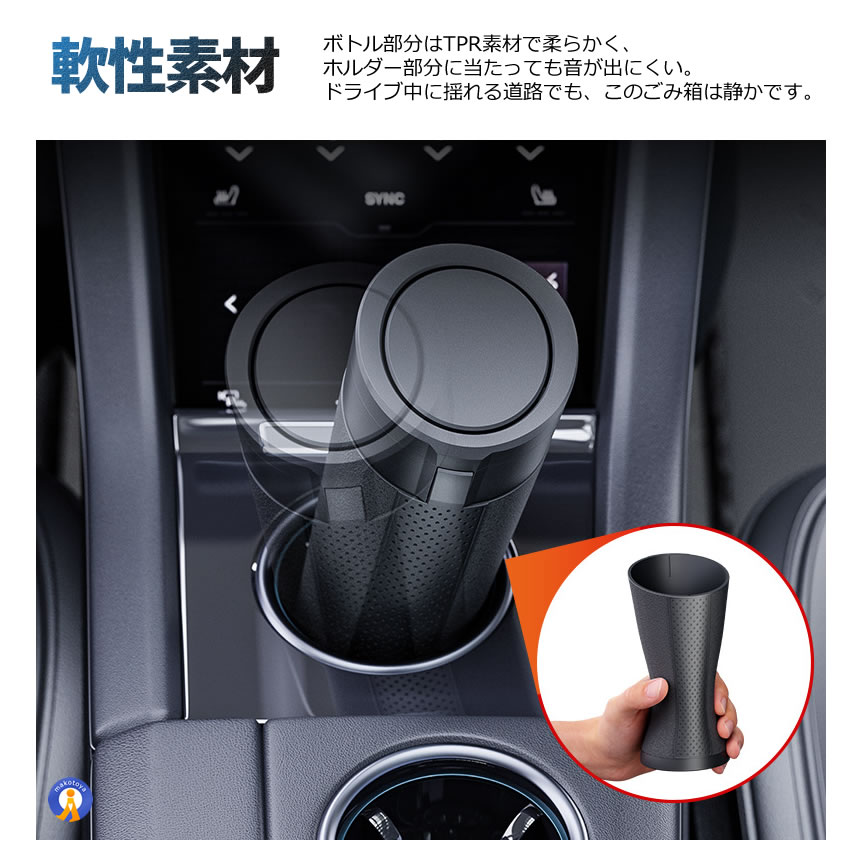 とてもスリムなごみ箱で、ドリンクホルダーなどに