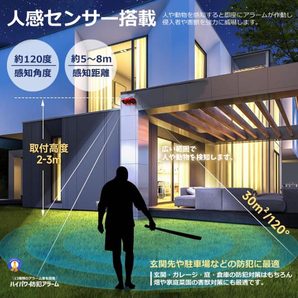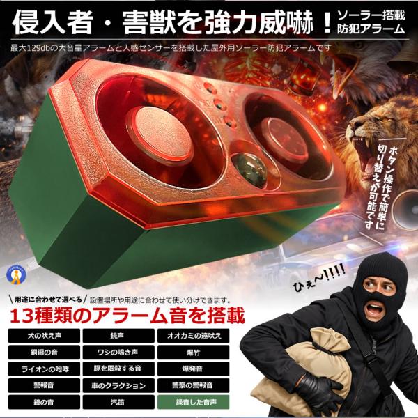 ハイパワー 防犯アラーム 13種 人感センサー 129db 大音量 ソーラー 録音機能 リモコン付 防水 N911T