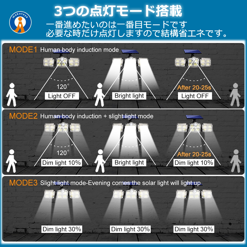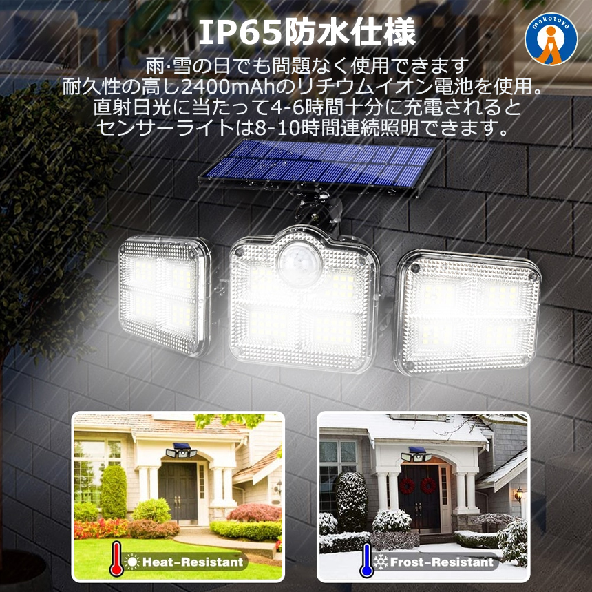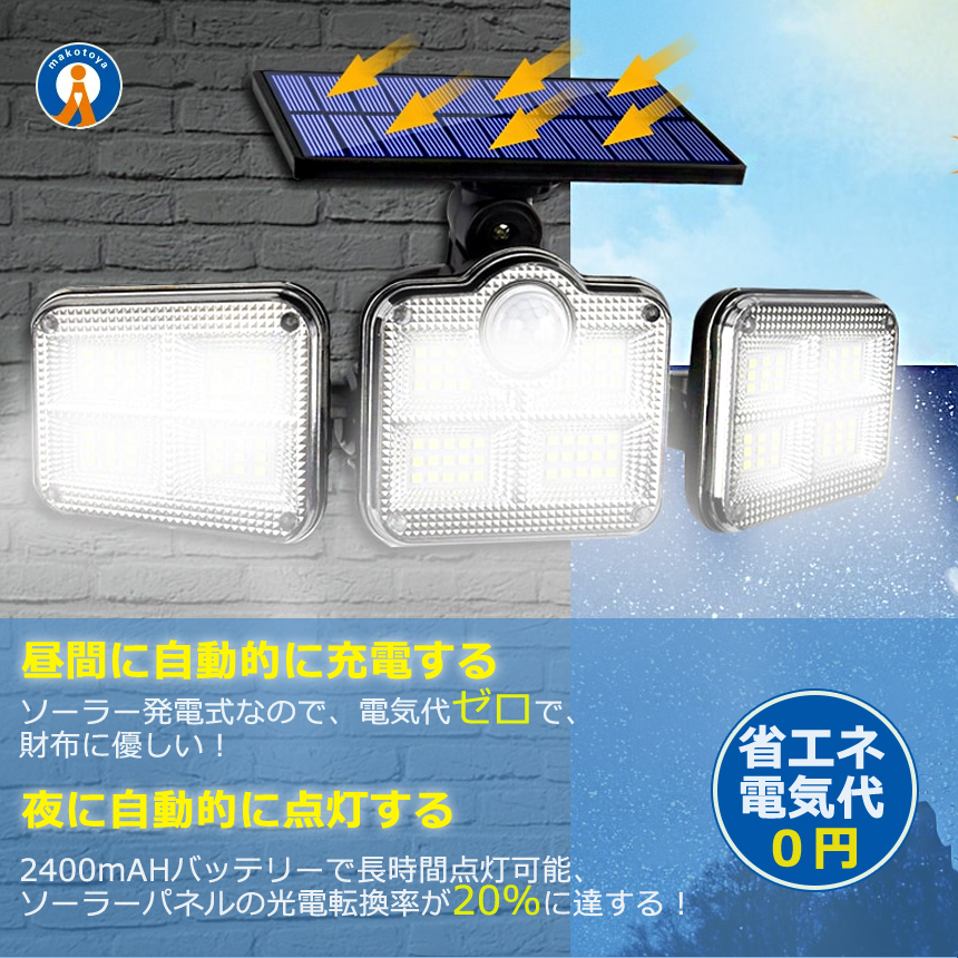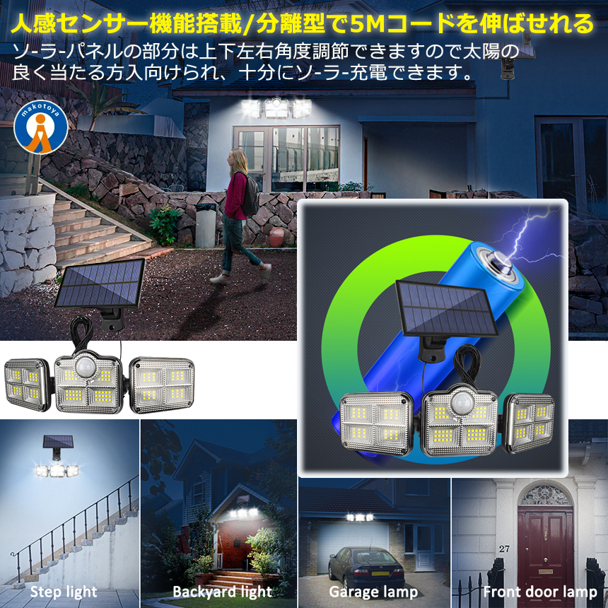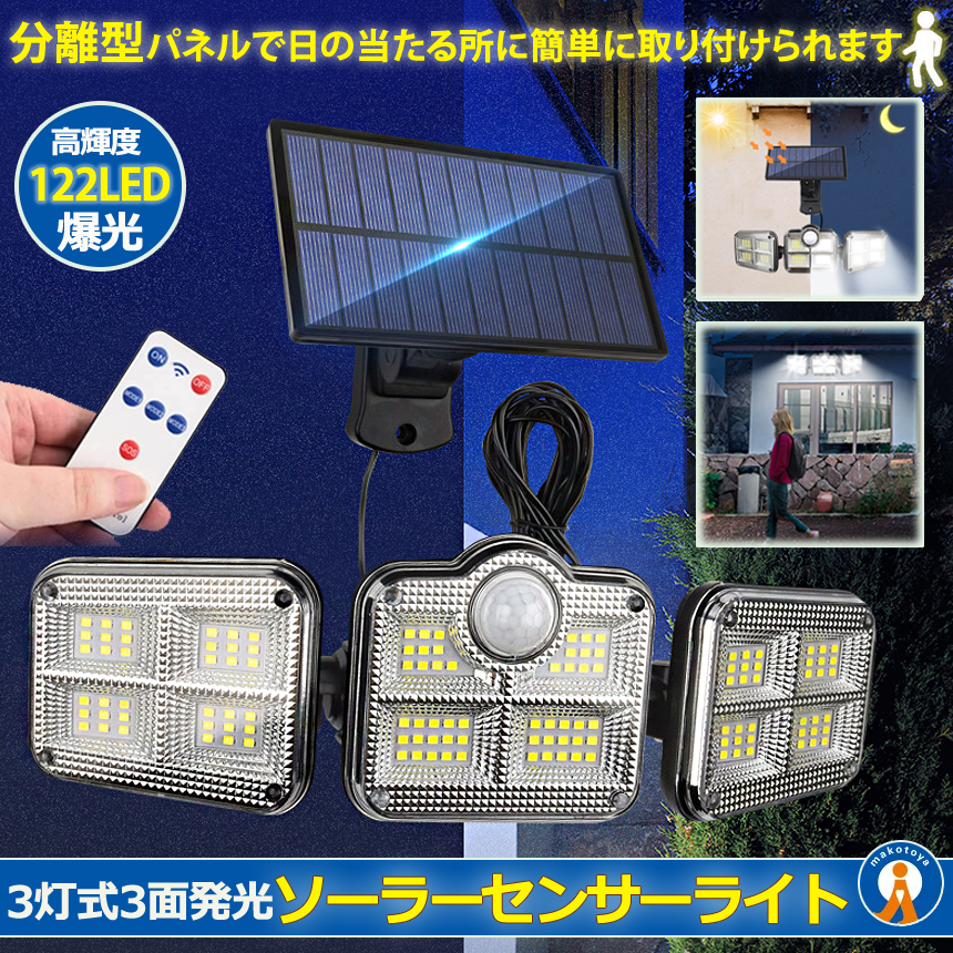 ソーラーライト 122LED 屋外 分離型 5mコード付き センサーライト 人感センサー 玄関 広範囲 壁掛け 防犯 照明 爆光 リモコン付き 自動点灯 SANMENRAIT