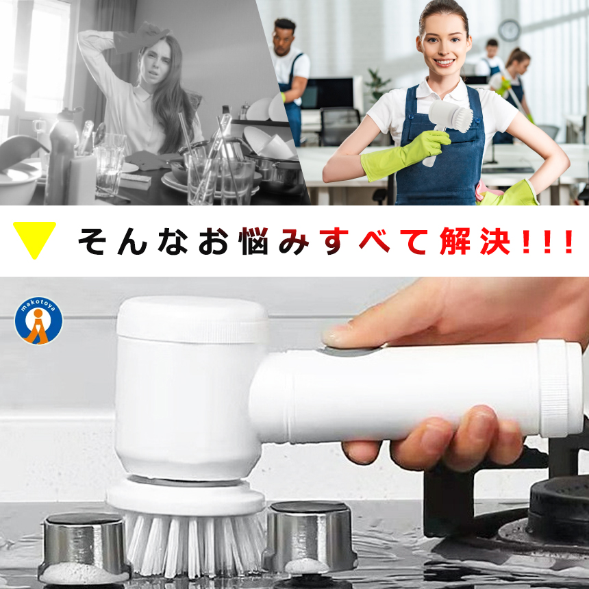 電動ブラシ 5IN1 バスポリッシャー 充電式 コードレス 風呂掃除 床掃除 お風呂掃除 キッチン台所汚れ お皿洗い バスブラシ 洗車 黄砂 MAHOBURASHI