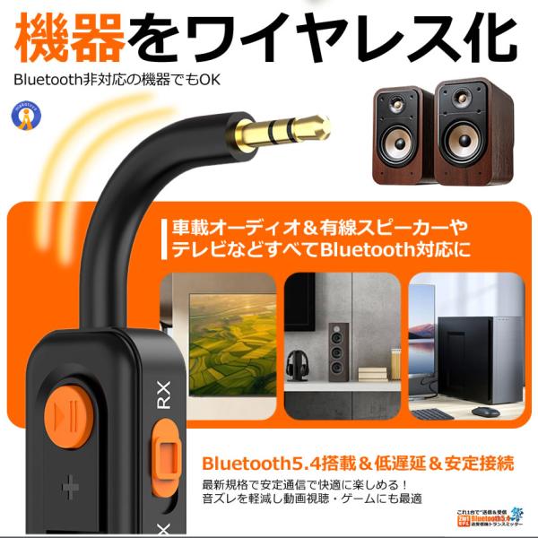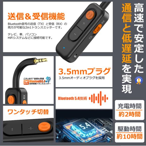 Bluetooth5.4 送受信機 トランスミッター レシーバー 2in1 AUX対応 一台二役 低遅延 BLUESCEIVER