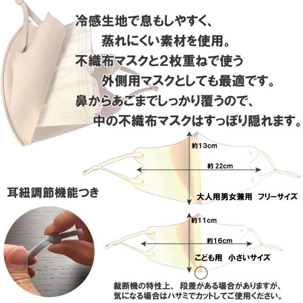 冷感素材で、通常の不織布マスクと違いサラサラ今の時期にぴったり。