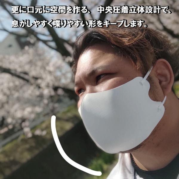 更に口元に空間を作る、中央圧着立体設計で、息がしやすく喋りやすい形をキープします。