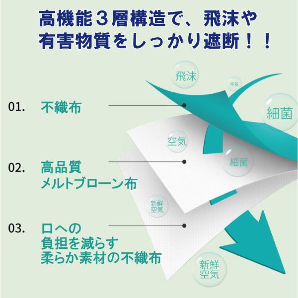 高性能3層構造で有害物質からしっかりガード。 顔を大きく隠したい女性にも、人気の商品です。