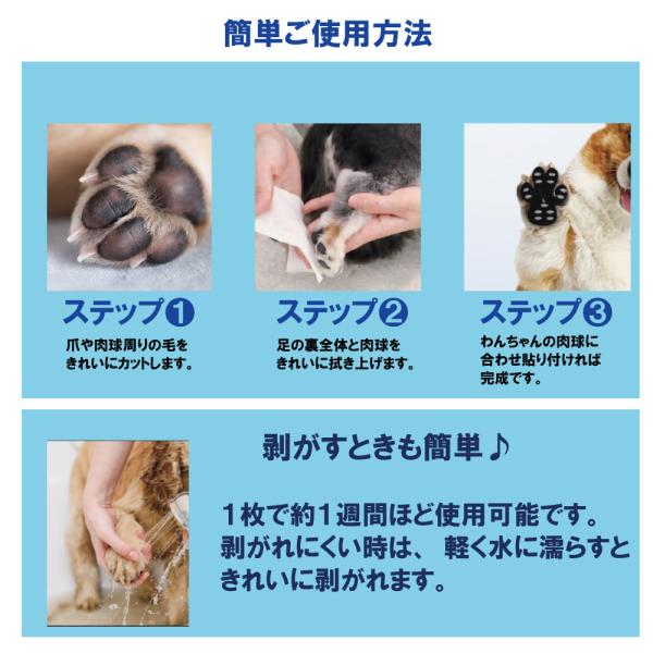 わんちゃんの足裏にはるだけで、底部のシリコンパッドが足の滑りを防ぎます。