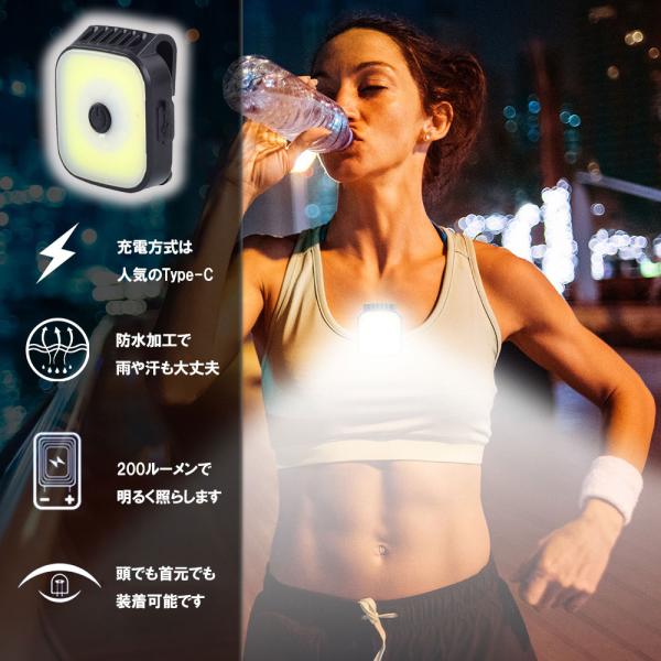 ランニング ライト 夜間 Type-C 充電式 セーフティ クリップ LED 懐中電灯 軽量小型 キャンプ 犬の散歩 ウォーキング ヘッドライト 光る フェザーストア