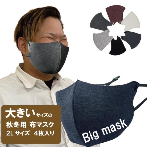 大きなマスク 大きめ 洗える ビッグマスク 特大 2L 大きいサイズ 秋冬用 中厚手生地 耳が痛くならない 蒸れない おしゃれ 4枚 フェザーストア