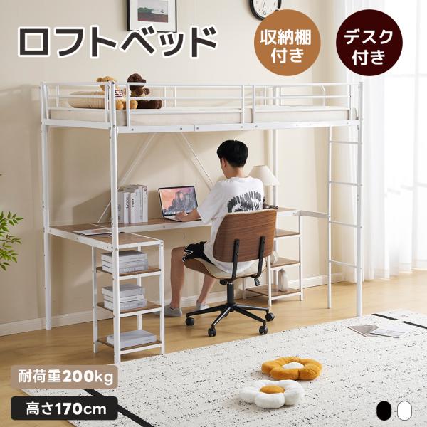 ロフトベッド 大人用 パイプベッド シングル デスク付き スチール 耐震 パイプ 収納棚 頑丈 スチールベッド 収納 大人 一人暮らし 子供ベッド 北欧風
