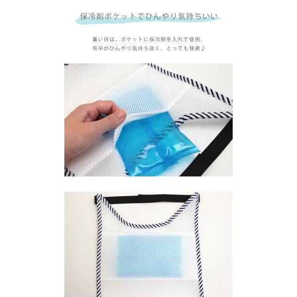また、暑い日にはポケットに保冷剤をIN。背中がひんやり気持ちよく、さらに快適です。