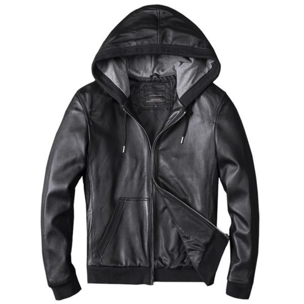 本革ジャケット ラム革 メンズ フード付き レザージャケット カジュアル 無地 ジップアップパーカー 薄手 防風 ジャンパー レザーコート