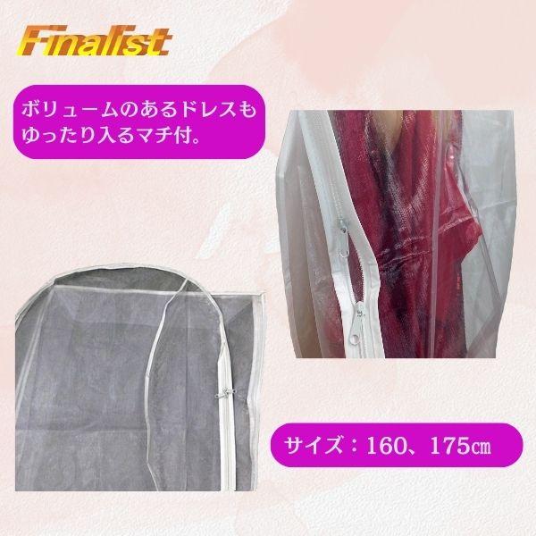 【選べる2サイズ】160cmと175cmをご用意。スタンダードドレス、モダンドレスなど、様々な丈のドレスに対応します。裾広がりの大きなドレスも収納できるよう、マチ付きでゆったりとした設計です。