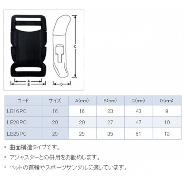 YKK 20mm クロ プラスチックバックル ペット用 LB20PC MBS 爆買
